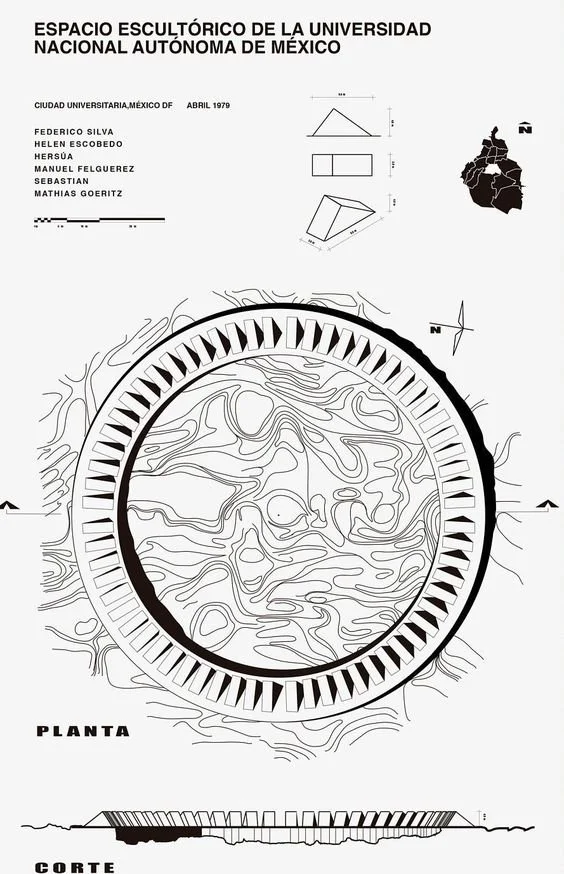 obra de Federico Silva, Helen Escobedo, Manuel Felguérez, Mathias Goeritz, Hersúa y Sebastián, erigida en la UNAM, en la Ciudad de México, en 1979.